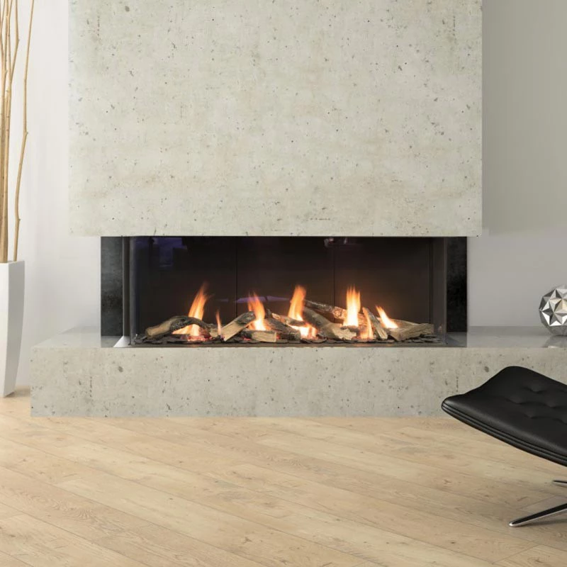 Planika Valentino 1300 LFR gaspejs til indbygning i en væg med syn fra tre sider. (Læs mere)